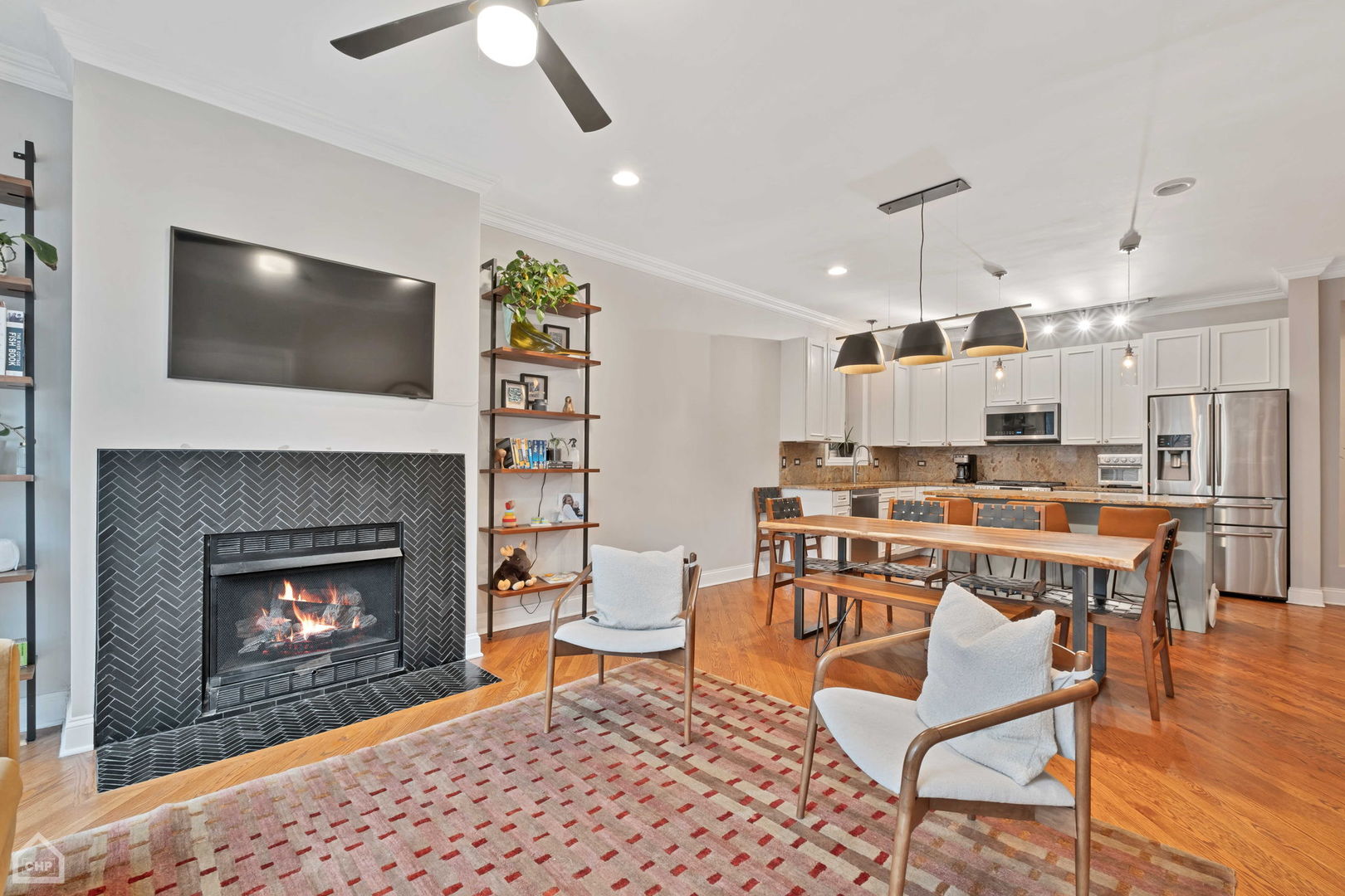 This expansive, beautifully updated West Town 3 bed/3 bath duplex lives like a single-family home! Enjoy two full levels of luxury living, along with spacious private back deck, lovely common back yard/patio area and parking included. Open kitchen features an abundance of white cabinetry, stainless steel appliances, granite countertops and a breakfast bar. Dining area allows for a large table and opens to the bright, extra-wide living room w/ vented gas fireplace. Two bedrooms on the main level, including the primary suite w/ organized walk-in closet. Spa-like en-suite primary bathroom with separate tub + shower and double sinks. Second full bathroom on the main level + a private deck off the back that perfect for relaxing, entertaining + grilling. Lower level boasts high ceilings and a...